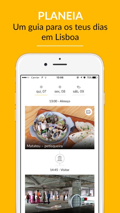 Estás a ver aquele amigo que vive e conhece a cidade melhor do que ninguém? Em Lisboa, esse amigo somos nós! 2 perguntas, 3 passos e terás apenas o MELHOR de Lisboa, sem ter de pesquisar nada! Continua connosco e ouve bem: o Lisboa Cool até vai caminhar lado a lado contigo! Vamos dizer-te quando são horas de ir e quando são horas de ficar. E faremos qualquer coisa por ti! Afinal, é para isso que servem os amigos! Para nós, a amizade significa gostar e partilhar. E é por isso que te queremos levar aos locais mais incríveis de Lisboa. Para os nossos amigos, apenas o melhor! Um roteiro de Lisboa criado em segundos. Só tens de responder a 2 perguntas: qual o teu estilo de viagem e quando é que nos vens visitar. Até temos algumas opções suplentes se não gostares das nossas primeiras escolhas. E… PUMBA! Terás os teus dias em Lisboa todos planeados com as melhores experiências de sempre! EXCLUSIVAMENTE O MELHOR Fazemos o trabalho todo por ti. Como gostamos de dizer, para os nossos amigos, apenas o melhor. Já fomos a todo o lado em Lisboa, mesmo a todo o lado! E selecionamos apenas o melhor para que os teus dias na cidade de Lisboa sejam a melhor experiência de sempre. CONTIGO, OFFLINE E ONLINE Estaremos contigo durante toda a viagem: offline e definitivamente online. Não apenas através do roteiro da cidade de Lisboa, mas também graças ao mapa que o acompanha – e que funciona online e offline. Sem complicações, são a melhor forma de andar de um lado para o outro. ESTÁ A CHOVER, E VAIS SABER QUE ESTÁ É uma mensagem que não vais querer receber, mas vamos avisar-te sobre o tempo em Lisboa, seja bom ou mau. Quanto a isso, ainda não o conseguimos controlar… pelo menos para já… PERTO DE MIM É a nova funcionalidade que te vai fazer descobrir experiências incríveis em Lisboa que nem imaginavas que estavam tão perto de ti! Segue a viagem em Lisboa que preparamos para ti e aproveita. Tens a nossa palavra, vai ser memorável! Depois… queremos ver fotos ;)