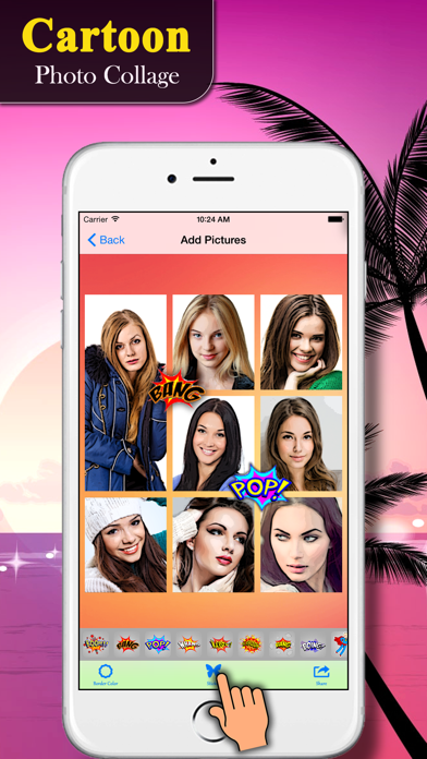 >> Cartoon Photo Collage lets convert your photos into cartoon-like pictures with only one button click and make collage with. >> Cartoon Photo Collage very user friendly, You can easily create cartoon collage of different -different frames. >> You can make collage upto 9 frames. >> Apply custom stickers on your collage. >> Easily sharing and saving collage pic.
