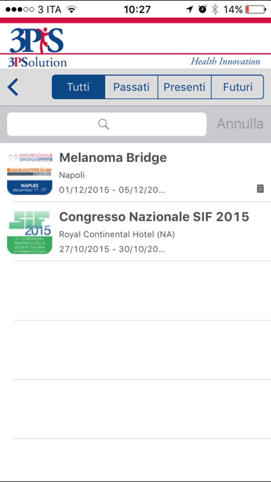 Applicazione di 3P Solution, Provider ufficiale Agenas 327, che permette di vedere in tempo reale gli eventi passati e futuri accedendo ai contenuti dinamici: - Elenco congressi ed eventi ECM di formazione in sanità - Informazioni generali sull’eventi - Contributi multimediali: programmi e video - Condivisione di documenti