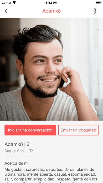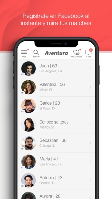 Conozca a solteros interesantes a su alrededor, donde quiera que vaya. Aventura es la forma más rápida de conocer solteros cerca de ti. Pase de registrarse ... a fechas reales en segundos. ¡Entonces puedes comenzar a conocer gente nueva de inmediato! Cómo funciona Aventura: 1. Cree una cuenta iniciando sesión en Apple, Facebook o utilizando su dirección de correo electrónico 2. Complete su perfil para tener mayores posibilidades de encontrar su pareja 3. Comience a buscar miembros en la pantalla de coincidencias 4. Seleccione Quick Match y Pase simple o Me gusta a otros miembros. 5. Verifique quién le gustó, a quién le gustó y los gustos mutuos en la página Me gusta 6. Compruebe quién está en línea cerca de usted en la página "Quién está en línea" 7. Envía un Flirt desde la página de perfil y muéstrale a otro miembro que te gusta. La aplicación es de uso gratuito, pero puede mejorar su experiencia actualizando a nuestra membresía premium VIP. Características de la membresía VIP: * Me gusta: mira a quién le gustas * Más coqueteos: 3 coqueteos por 24 horas para más posibilidades de un partido * Deshacer coincidencias o deslizamientos fallidos * Posibilidad de ir en privado * Enviar coqueteos ilimitados * Chatea con otros miembros * y mucho más próximamente ... Precios de membresía VIP Aventura: * 1 semana por $6.99 * 1 mes por 29.99 USD * 3 meses por $39.99 Información importante de membresía VIP: * El pago se cargará a la cuenta de iTunes en la confirmación de la compra. * La suscripción se renueva automáticamente a menos que la renovación automática se desactive al menos 24 horas antes del final de la semana actual, el mes actual o el período de membresía VIP de tres meses. * Se le cobrará a la cuenta por la renovación dentro de las 24 horas anteriores al final del período actual de membresía VIP de la semana actual, el mes actual o el período de tres meses. * La renovación automática puede desactivarse yendo a la Configuración de la cuenta de iTunes del usuario después de la compra. * No se permite la cancelación de la suscripción actual durante el período de suscripción activo. Política de privacidad e información sobre los Términos de servicio: * La política de privacidad de Aventura se puede encontrar aquí: https://www.aventuraapp.com/privacy-policy * Los términos de uso de Aventura se pueden encontrar aquí: https://www.aventuraapp.com/terms-of-service Debe tener al menos 18 años para usar Aventura.