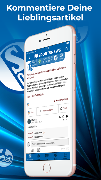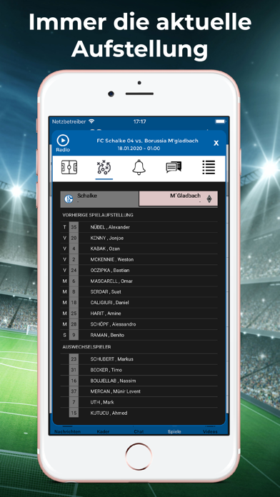 Du bist Fan des FC Schalke 04 und willst stets über die neuesten Nachrichten über und von den Spielern informiert sein? Du willst wissen, welcher FC Schalke 04 Spieler verletzt, erkältet oder gesperrt ist? Dich interessieren die neuesten Transfergerüchte? Du wolltest schon immer gleichzeitig ALLE Twitter Nachrichten Deiner Stars empfangen? Es gab jedoch bislang keine App, die Deinen Informationsdurst zum FC Schalke 04 stillen konnte!!? Mit der Sports News - FC Schalke 04 Edition hast Du jederzeit und überall Zugriff auf all diese Informationen zu Deinem FC Schalke 04! Wir haben die neuesten Nachrichten von lokalen, regionalen, überregionalen, nationalen und internationalen Nachrichtenquellen. Wir haben die Twitter Feeds Deiner Stars eingebunden. Wir geben Dir Zugriff auf die neuesten Statistiken der Spieler und auf die Videos Deines FC Schalke 04! Neben den schnellsten, genauesten und zuverlässigsten Sportnachrichten und Ergebnissen der Knappen, bieten nur wir dir die Möglichkeit den Spielen hautnah und ohne Zeitverzug zu folgen. Unsere LIVE-Match-App ist die innovativste und hochwertigste 2nd Screen App, die du im AppStore finden kannst. Somit kannst du neben den aktuellen Ergebnissen und Statistiken auch die aktuellen Ballbewegungen des FC Schalke 04 überall und vollkommen mobil mitverfolgen. Näher dran am Spiel kannst und wirst du nur noch im Stadion sein! Hauptfunktionen: - Neuste Nachrichten und Gerüchte zum FC Schalke 04 und all seinen Spielern - Twitter Feeds des Vereins und aller Spieler - Alle Informationen und Statistiken zum Kader des FC Schalke 04 - Schnellster und zuverlässigster Ergebnisdienst aller Spiele des FC Schalke 04 - LIVE-Match-App für alle Spiele des FC Schalke 04 (inkl. der Freundschaftsspiele), die es dir erlaubt dem Spielgeschehen LIVE, übersichtlich und ohne Zeitverzug zu folgen - LIVE-Statistiken für alle Spiele - Umfassende Statistiken – inklusive Torschützen, Karten, Auswechslungen, Ballbesitzt und diversen weiteren Statistiken - Nutzerfreundliches Interface mit einer effizienten, mühelosen und blitzschnellen Navigation