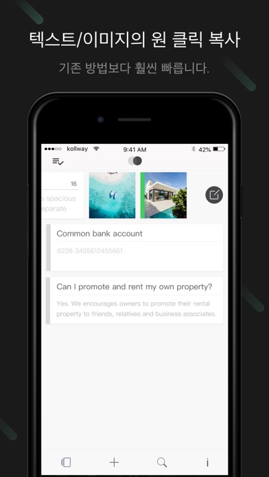 직장과 생활에서 우리는 종종 다양한 질문에 답하기 위해 휴대폰을 사용합니다. 대부분의 질문에 대한 답은 동일하지만 반복해서 입력하여 보내야합니다. 설명을 위해 사진을 보내야한다면 앨범을 통해 찾아야하는데 시간과 노력이 필요하다. FastCopy 를 사용하면 텍스트와 그림을 최대한 빨리 필요한 사람들과 공유 할 수 있습니다. # 특수 기능 : 1. 한 번의 클릭으로 텍스트와 그림 복사 2. 여러 공통 단어 병합 및 복사 3. 긴 사진을 생성하고 보냅니다. 4. 복사 습관에 따라 자동 정렬 5. 분류 관리 6. iCloud 다중 장치 동기화 # FastCopy 를 선택하는 이유는 무엇입니까? [기존 복사 프로세스] : 1. 텍스트를 기록하는 메모 또는 기타 응용 프로그램을 엽니 다. 2. 길게 누르기 3. 선택 상자가 나타날 때까지 기다립니다. 4. "선택"을 클릭합니다. 5. 커서를 끌어 복사 할 텍스트를 묶습니다. 6. 선택 상자가 나타날 때까지 기다립니다. 7. "복사"를 클릭하십시오. 8. 죄송합니다. 클릭이 잘못되어 "잘림"상태가됩니다. 2 단계를 반복하십시오 ... [FastCopy 복사 프로세스] : 1. 열기 2. 복사하려면 클릭 분명히 FastCopy는 더 빠르고 편리합니다. 이것은 그 존재의 큰 의미 인 작은 응용 프로그램, 큰 효과입니다. ------------- IdeaTiny 생산 : 가장 작은 수요도 실질적인 가치가 있습니다. 흥미로운 사람들에게 연락 [email protected]