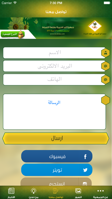 جمعية البر الخيرية بطلعة التمياط الرؤية رواد الخير..وبالابداع نسبق الغير لننشر الرحمة..والتنمية المستدامة الرسالة خدمة المجتمع وإعانة المحتاج أهداف الجمعية: 1. تقديم المساعدات النقدية والعينية للفقراء و المحتاجين لتحسين ظروف معيشيتهم 2. تقديم خدمة نوعية وتثقيف مجتمعية كمكافحة التدخين ورعاية الأسرة و الحث على القيم المجتمعية كالتعاون وعمل الخير. 3. تدريب وتعليم أبناء وبنات المستفيدين بعض المهن وتأهيلهم لخدمة مجتمعهم 4.وضع المستفيدين أمام الفرص التنموية المتاحة لهم ومساعدتهم لتحقيقها وتوفير فرص العمل لهم ما أمكنز 5. تنفيذ البرامج الموسمية للمستفيدين كإتاحات فرص الحج و العمرة وكسوة العيد و الشتاء والأضاحي وإفطار صائم وغيرها 6. العناية بالمرافق العامة بالمدينة و المساعدة في ترميم بيوت المستفيدين ما أمكن العنوان: المملكة العربية السعودية - منطقة الحدود الشمالية - محافظة رفحاء العنوان: رفحاء - الحدود الشمالية _ طلعة النماط صندوق البريد: 16 الهاتف الثابت 1: 046783868 الهاتف الثابت 2: 048981098 رقم الفاكس: 046784014 برمجة وتصميم : مؤسسة الابداع الرقمية El-abda3.com