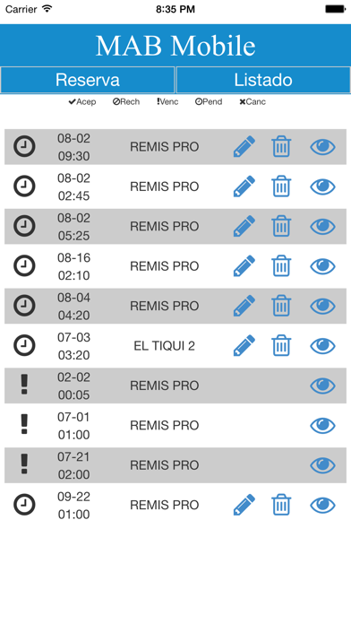 MAB Mobile permite solicitar un remise de su empresa de manera remota sin necesidad de comunicarse telefónicamente ni vía mail, informando a Ud. el auto asignado para su viaje, además de registrar su reserva, los kms aproximados a recorrer y el valor aproximado del servicio.