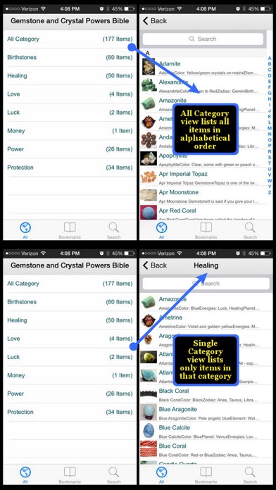Gemstone & Crystal Powers Bible ** 50% Off Today!! WHAT IS GEMSTONE POWER? ======================== Healing stones, crystals and semi-precious gemstones come from one unified source - Mother Earth. Created from the magma or Earth's inner core, gemstones have gone through a geologic process of heating, cooling and displacement on their way to their present form. A magical and symbiotic connection has always existed between human beings and gems. Evidence of gemstones used for healing has been found as far back as 4000 BC. Ancient civilizations such as the Chinese, Egyptians, Sumerians, Greeks, Romans, or Shamans and Medicine Men have used gemstones for healing in multiple ways - made into powders or elixirs, worn, carried or placed on the body and in ceremonies or rituals. This ancient knowledge has been passed down to our day and with the emerging popularity of holistic health and healing the use of gemstones is again making its way into modern life. The energy field of different gemstones is influenced by geometrical form, color and subtle vibration. Each stone is made up of minute crystals which are in constant motion thus emitting an energy signature or frequency. The gemstone's color also plays a dynamic role in the stone's healing energy. ABOUT THIS APP ======================== Gemstone & Crystal Powers Bible is an application that contains detailed information of over 170 different gemstones, crystals, and healing stones. The information contained are very detailed and useful for anyone who wishes to understand more about these mystical gems as well as using them to help improve oneself, both spiritually and physically. The gems are categorized by their properties/powers. Each entry of this encyclopedia contains the following information: - An image of the gemstone - Color - Element - Chakra - Energies - Meaning of the gemstone - Usage - Other important information The application is optimized for iPad/iPad2/The New iPad/iPad mini, iPhone 3GS/4/4S/5/5S/5C/6/6+ & iPod Touch. FEATURES ======================== This application has the following features: * 2-Level Category Views with THUMBNAIL preview of each item * All Category View to preview all items in alphabetical order * Single Category View to list items of the same category * Ability to BOOKMARK selected items for easier reference * Add a CUSTOM NOTE to any item * iCloud synchronized Bookmarks and Custom Notes * EMAIL any items to yourself & friends * A SEARCH engine * OFFLINE browsing ======================== This application is brought to you by Audio128.com