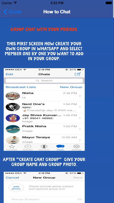 This content application is guides for Whatsapp. This application will lets you know how to communicate with family and friends for free, no matter how distance they are by imo applicaiton. Because of Whatsapp, you can make audio calls, send images, send animate stickers and send text messages without worrying about overseas charges, text limits, or going over on your minutes. Feature contents : how to Donwnload and install, To get group chat, How to share pictures, videos and stickers, To make call and text messages. *** This guide app is not create by Whatsapp official.