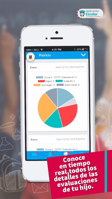 Aplicación Escolar del Instituto Queensbury, México, para recibir información como mensajes de pagos, tareas, circulares , seguimientos académicos , calificaciones graficadas y más.