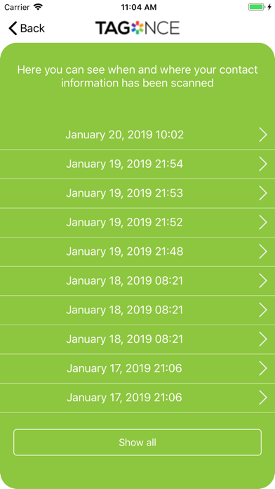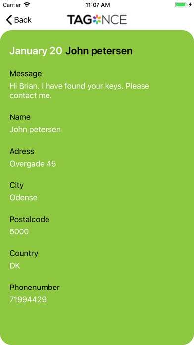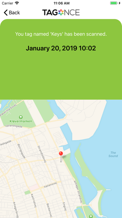 App features: Tags: For each tag you own, you have a dashboard where you can setup privacy settings, email QR code, preview and rename. Settings: Multiple privacy options are available for each tag. Choose to share as many or as few pieces of information about how you can be reached. Trips: If you use Tagonce as a luggage tag you can add your complete journey by entering dates and places you are planning to visit - based on these details your tag information will automatically be updated. Notifications and emails: If your tag is scanned, people viewed your tag or left a message you get notified both by the app and by e-mail. Views: Here you can see when and where your tag was scanned as well as read received messages. Profile: Permanent contact information only needs to be entered once. This feature also allows you to upload a photo. Messages: If someone finds your stuff and scans your tag, they can leave a message. You will get a notification and e-mail and can read the message in your app QR Scanner: From the dashboard we have also provided you with a QR scanner you can use for reading all kinds of QR codes. Email QR code: Some users like to be able to print the QR code from one of their tags on something for different reasons. We support that too. Preview: You can always get a preview of what your tag looks like when scanned based on any date you choose. Autocomplete: When adding a trip you have autocomplete lookup so that it is super fast to add new trips.
