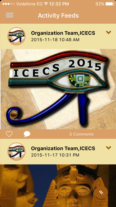 Description: Download the app for ICECS 2015. With just one app download, you’ll have access to all of ICECS 2015’s event content, with features including: • Activity Feed - See what people are saying, view photos from the event, and share photos and comments around the sessions you’re attending. • Keynote Speakers - Find the event's keynote speakers, and related information (contact details, sessions, etc.) • Agenda – Access your complete event schedule, and related information (session time, room, speaker info, etc.) • My Agenda – Create your own personal agenda, add the sessions you are interested to attend, and sync with your calendar. • Sponsors - See the event's sponsors • Map - View the event's location on Maps and internal map • Messages – Engage with other attendees • Photo Gallery – View photos from the event • Attendees - See who’s at the event, and connect with them on the app • What's now - Check which sessions are currently taking place • Push Notifications - Get updates about activities; attendees like or comment on your posts or send you messages, and announcements sent by organizer About the event: This event will let you celebrate with us where systems were invented seven thousands years ago, where circuits have different meaning, and where silicon cover most of the land. Come and be witness of the new political, economic and technological boom. Come and celebrate the vivid images across history and the new Cyber future.