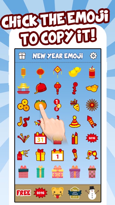 Wow! New Year is coming! But wait a minute, are your texts and emails boring? Do you want a more special, personalized and expressive form of communication? Now you can attach New Year Emoji, Emoticons & Smiley to Any Messages! Download it now! ========== How to use: 1. Open New Year Emoji. 2. Touch the Emoji sticker you love to copy to clipboard. 3. Paste the Emoji sticker into your message.