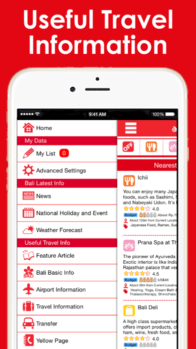 Five points of Api Bali Guide English! ■ Point 1 ■ Offline map of sightseeing spot! You can also use the offline map of Bali throughout Bali including the sightseeing areas of Bali such as “Kuta-Legian”, “Seminyak”, “Jimbaran”, “Nusa Dua”, “Sanur”. In addition, “Lombok Island” map is now added! * Even while traveling without an internet connection, you can see your current location and surrounding information in the map by using GPS only. ■ Point 2 ■ Your favorite spots can be easily managed in “My List” By pressing "pencil button" of each spot, it is easy to register in My List. You can put together the place you want to go in your “MY LIST” and it’s very convenient to look at while traveling. ■ Point 3 ■ Great discount coupons available! Discount coupons of local free papers in Bali and JCB Card preferential shops can be found. You can also receive coupons around your current location and you can easily find discount coupons at these preferential shops. * Turn on the GPS on your smartphone. ■ Point 4 ■ Full of useful guide information for traveling! We keep you updated on the latest information of Bali such as “Bali Basic Information”, “Travel Preparations”, “Airport’s Map”, “Transportations”, “Holidays and Events”, “News”, “Yellow Pages”. ■ Point 5 ■ Spa and sightseeing tours can also be booked! You can book spa, sightseeing tours, and also optional tours to Japan at affordable local prices from the "view related optional tours" button on each spot. [Api Bali Guide] is a Bali travel guide application which updates more than 500 information of the latest spots in Bali before and while traveling without the Internet connection. Discount coupons and JCB preferential shops, nearby café, restaurants, hotels, esthetics, and tour information are available as well. Offline map that understands current location and surrounding spots is very complete. [Api Bali Guide] is a travel guide application that delivers the latest information, news, topics, sightseeing and tour information of Bali by local free paper “Api Magazine”, which is established 15 years ago. With Bali's travel guidebook and this [Api Bali Guide], your trip in Bali will be fulfilling and excited! ※ Please make sure the GPS is turned on in order to make a full use of the recommended function to the customer. However, consumption of the battery of the smartphone may be accelerated by turning on the GPS and the using of this application.