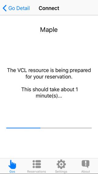 VCL go allows users of Apache VCL (Virtual Computing Lab) to easily create and connect to their reservations, as well as managing existing reservations. It can automatically launch other apps that are used for connecting to the reservations, making VCL use very easy from iOS devices.