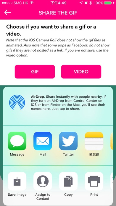 Simple to create a Gif animation file or Video ; Choose text, fonts, emoji, background color, text color and image. Share as a gif file or a video to any app as Facebook, Twitter, QQ, WhatsApp, Wechat, Line, Etc. * export video for some apps which don't support gif file FEATURES: - Create gifs using text and images: Allows to create each frame and edit the content by adding text, image and changing background color. * Just type space if don't want to add text front of image. - Choose ratio: Square, Landscape, Portrait - Share to any app installed on your device. - Creates both gif & video: In order to provide maximum support to share, the app can creates a video and a gif, user can choose which one to share or save. - iPhone & iPad support