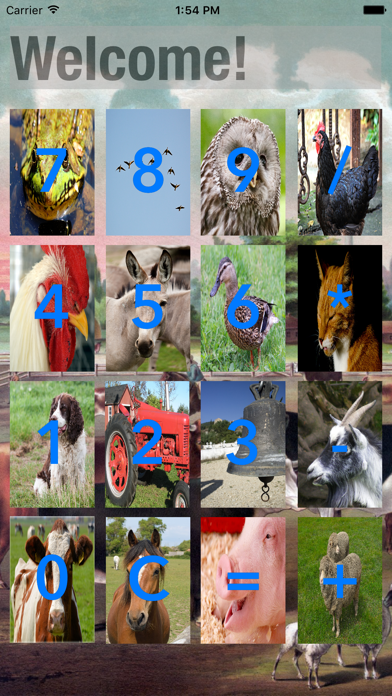 This is a simple calculator that is designed for kids to help them learn sounds of some farm animals and numbers at the same time. The calculator also has big buttons to make it easy to see and touch. Enjoy the ambience of birds on a farm with the included soundtrack. Have fun!