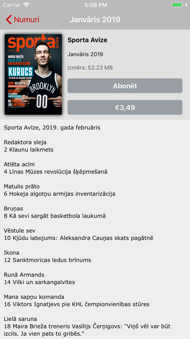 Tuvāk. Dziļāk. Atklātāk. Sporta Avīze – vadošais sporta žurnāls Latvijā. Kvalitatīva informācija, trāpīgi komentāri un sporta notikumu analīze, aizkustinošas intervijas un stāsti no sporta skatuves un aizkulisēm, dzīvesveida padomi sporta entuziastiem. Viena žurnāla izdevuma numura cena - 2.99 EUR 3 mēnešu abonements - 7.99 EUR 6 mēnešu abonements - 14.99 EUR 1 gada abonemements - 27.99 EUR * Maksājumi tiks atskaitīti no iTunes konta pēc to apstiprināšanas. Abonementu cena tiek notiekta, un tie tiek atjaunoti automātiksi abonēšanas perioda pēdējās 24h, ja tie nav atslēgti vismaz 24h pirms abonēšanas perioda beigām. Pēc iegādes abonementus var pārvaldīt un automātisko atjaunošanu var izslēgt, dodoties uz lietotāja konta iestatījumiem. Lietošanas noteikumi un privātuma politika: http://magdisplay.com/ios-eula-lv.html