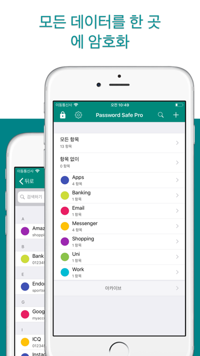 수 백 가지의 서비스와 앱을 사용하면서 암호를 잊어버려서 짜증나신 적이 있나요? 종이에 직접 쓰기보단 안전한 방법으로 암호를 저장하고 싶으신가요? Password Safe가 해결책입니다! 이 앱은 입력한 모든 데이터를 암호화된 상태로 저장할 수 있습니다, 마스터 암호만 기억하고 있으시면 모든 데이터를 안전하고 간편하게 접근할 수 있습니다. 암호화는 고급 암호화 표준 알고리즘(AES) 256비트. 메모: 인터넷 권한이 없기 때문에 동기화 기능이 없습니다. 데이터베이스를 다른 기기와 공유하고 싶으시면, 드랍박스(비슷한 것)에 업로드하시고 다른 기기에서 들여오기 기능을 이용해 사용할 수 있습니다. *주요한 기능들* • 암호, 데이터 등을 위한 안전한 저장소 • 입력 분류 기능 • 마스터 암호로 접근 • Auto Fill support • 안전한 암호를 만들 수 있는 비밀 번호 생성기 • 암호화된 데이터베이스 백업 및 복원 • 통계 • 클립보드 자동 청소기 • CSV 형식 들여오기/보내기 • 자동 잠금 • [PRO] attach images to entries • [PRO] 입력-요소를 정하고 순서 바꾸기 가능 • [PRO] entry-fields can be used more than once • [PRO] touch id/face id login • [PRO] archive entries • [PRO] define multiple categories for an entry • [PRO] export to pdf / print • [PRO] see password history • [PRO] store unlimited entries (max. 50 in free version) *쉬운 사용법* 비밀번호 하나만 기억하시면 모든 비밀번호에 액세스하실 수 있어요! 직관적인 디자인으로 데이터를 쉽고 효율적으로 관리할 수 있게 도와드려요. 카테고리를 사용해 목록을 정리하세요. 특정 비밀번호를 정렬하고 훨씬 쉽게 찾을 수 있게 도와드려요. 지문을 사용해 앱에 간편하게 로그인하고 로그인 정보를 빠르고 안전하게 이용하세요. *보안* 강력한 256비트의 고급 암호 표준(Advanced Encryption Standard)을 사용하여 강력한 보안을 약속합니다. 복잡한 새 비밀번호를 어떻게 만들지 고민되세요? 앱에서 새롭고 안전한 비밀번호를 만들어보세요. *인사이트* 비밀번호를 전체적으로 확인하셔야 하나요? 어떤 비밀번호를 가장 자주 사용할까요? 어떤 비밀번호가 짧을까요? 패스워드 매니저를 사용해 통계를 확인하세요! *데이터 주권* 사용자만이 자신의 데이터를 사용할 수 있습니다. 패스워드 매니저는 완전히 오프라인이기 때문에 데이터 누설이나 서버 데이터 해킹과 같은 일을 두려워할 필요가 없습니다. 오프라인이더라도 데이터를 쉽게 백업하고 복원할 방법을 제공합니다. For more information on Password Safe and Manager and Password Safe and Manager Pro, see our Privacy Policy (https://passwordsafe.app/ios/privacy.html) and Terms of Service (https://passwordsafe.app/ios/terms.html). 오류를 발견하였거나, Password Safe를 다른 언어로 번역하고 싶거나, 기능 추가 요청을 하고 싶으시면 망설이지 말고 연락주세요.