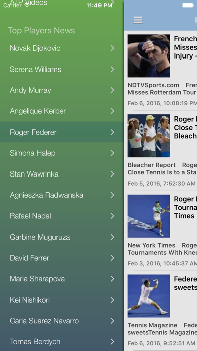 The Tennis News, Results & Scores app by News Surge delivers the latest breaking news, scores and results for tennis fans around the globe. Crafted by tennis enthusiasts, the app enables fans quick access to the newest tournaments/Grand Slam scores & results, photos and videos via Twitter, Instagram, and Youtube. You can also easily access the current player rankings plus news for individual top players such as Novak Djokovic, Serena Williams, Roger Federer, Maria Sharapova, Rafael Nadal and more. The Pro version of the app has no ads, plus the following extra features over the free version: * More stories per section * Full Match Doubles Video section * Get right to the breaking story via Notifications * News of top Doubles Teams * More features to be added in the future!