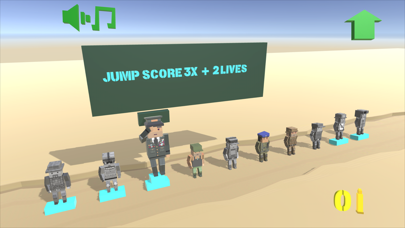 밀리터리 점프는 빠르게 진행되는 액션 게임으로 매력적인 그래픽을 통해 신경을 세우고 반응속도를 테스트 할 수 있습니다. 이 게임의 목적은 장애물을 피해 점프하여 최대한 갈 수 있는 곳 까지 생존하는 것입니다. 처음에는 느리게 낮은 장애물을 피하면서 진행되지만 장애물을 통과하면 할수록 게임은 점점 더 빨라지게 되면 살아남기 위해서 더 큰 장애물을 피해야 합니다. 한번에 3번까지 연달아 뛸 수가 있으니 장애물에 걸리지 않도록 하세요! 특징 - 최대한 멀리 갈 수 있도록 장애물을 피해 점프 - 최고득점을 얻어 보세요 – 한번 점프 할 때 마다 1점 - 특별 보너스와 군인을 잠금해제 하기 위하여 총알을 모아요 - 땅에 닫기 전에 3번 연속 점프 - 매력적인 심플한 그래픽 - 추가 트랙이 곧 나올 예정입니다!