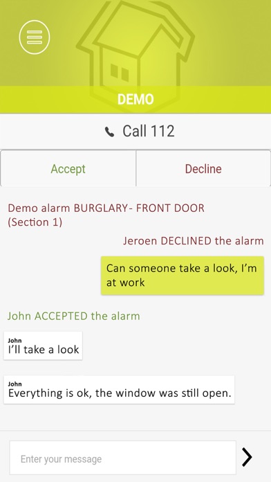 With mySmartControl you can monitor and control your home or business security system real-time and from anywhere. Receive real-time email and push notifications in case of an alarm, warning or other event. The unique chat function lets you handle an alarm in the most easy and effective way. Advanced options Of course the system can be armed and disarmed with the app. But besides that it’s also possible to bypass a (malfunctioning) sensor. So the system still can be armed. This option is rarely used on the normal keypad but now easily available. The status of the complete system and individual sensors is real-time available. The app is suitable for home and business use. In the app you can have multiple sites you can control. So it’s easy to control your home, office or sportsclub’s alarm system and receive alarms. The mySmarControl app is brand independent. In the compatibility list on our website http://www.mysmartcontrol.com is a full list of systems currently supported systems can be found. But there will be more, the app will soon be expended with new options for example alarm verification, ipad support, messaging and smartwatch support. Using the cloud service which includes the use of the app is subject to the following conditions and restrictions; Although mySmartControl has taken all necessary steps and precautions to ensure availability and operation of its services and products, it cannot guarantee the availability and proper functioning at all times. Any liability for any damage resulting from the access, use or not having full available of these services and products is emphatically disclaimed by mySmartControl.