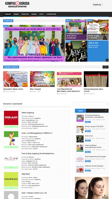 KompasGoroda - это интернет-журнал, установи его на своём мобильнике и получай актуальные новости о событиях и акциях в твоём городе. Это так-же первый мобильный справочник Германии, который поможет найти информацию о русскоязычных компаниях и организациях в различных городах.