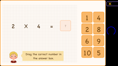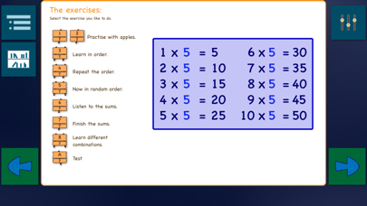 There are ten apples in a bag. How many apples do I have? Do you want to learn the first ten times tables in your head? This app contains a total of ninety exercises, which allow you to learn the tables, 1 through 10, well. The exercises are grouped into ten booklets. Each booklet contains eight exercises and covers one specific multiplication table. The booklet closes with a times table test at the end as well. The tasks arrange from simple to challenging. This approach comes back in the same way in each booklet so that you get used to it and do the exercises by yourself. By setting up the app in the form of a book, you can always choose the order in which you want to learn the tables. An app with ten booklets This app contains ten digital practice books. Each booklet covers one table and includes eight exercises and a test. Learn the table with apples in a basket First, you learn to understand the multiplication table by counting apples in a bucket. This way, you learn the concept of multiplying. Learning the table in order First, you learn the multiplication table in order. All sums are ordered from low to high. In this way, you will learn the ten multiplication sums of the table in your head. Learn the multiplications separately When you learn the multiplications in order, you will learn the sums in any order. You always make a choice for different answers. Learn to listen to the sum In this exercise, you will listen to the pronunciation of the sum and then type in the answer. By listening first, you will learn even better the sums from your head. Learn to complete the sum During these exercises, you will finish the sum to make the right outcome accurate. Two times a multiplication app Besides this app, we also have the app, Multiply to 500, which goes beyond the first ten tables and is more suitable for children who have already learn the tables once and want to repeat them again and also want to gain the understanding of higher times tables. To use the app in the classroom, it's good to know that the app works with multiple student accounts on the same iPad and works with Apple's new schoolwork app where you can easily integrate a specific lesson with other assignments or with self-made instructions by the teacher.