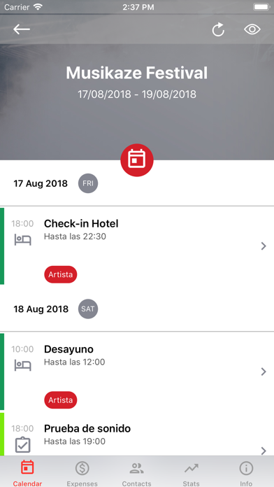 MusikazePro es una app que te permite consultar de forma rápida y agil, con tu smartphone, información de los eventos que organizas (planificación, fechas, horarios, estado de los eventos, hojas de ruta, contactos, estadísticas, gastos), con la ventaja de disponer de ella de forma offline, si estás sin conexión. Para utilizar este servicio, puedes contactar con nosotros a través de nuestro correo electrónico [email protected] o nuestro teléfono +34 984 395 141.