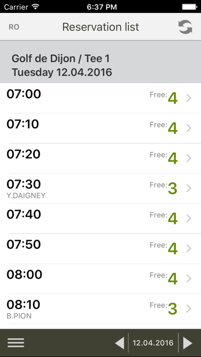 Dijon Bourgogne golf club IOS application allows the user to connect to selected golfclubs using iPhone. Based on a login a user can have access to the following services of a club : 1.Reservation : Teetimes, Professionals, Driving-Range 2.Tournaments : Announcement, Registration, Startlist, Results 3.Events : Announcement, Registration 4.Score Calculator 5.Handicap history 6.News ...