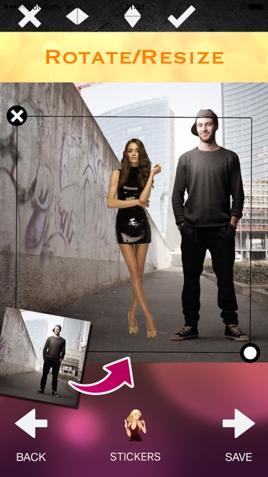*** Beautiful women on your photo!! *** Just a few taps, you can display hot beauties on your photo. Enjoy more than 60 beautiful women to paste on your photo. Of course, you are able to share photos on Facebook, Twitter or Instagram. And also you can send photos to your friends by email. How to use: Step1. Capture or import a photo Step2. Choose girls Step3. Rotate and resize girl to fit Step4. Save or share! Features: -> More than 60 attractive beautiful girls/women -> Rotate -> Resize -> Use existing photo or take a new shot -> Share your photos -> Save to photo library HAVE A FUN!!
