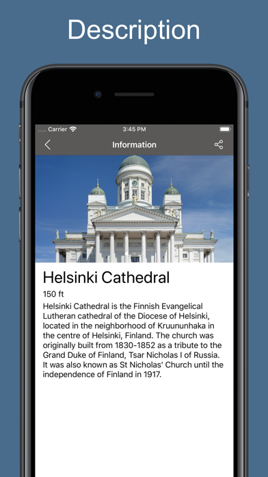 Helsinki 2020 — an offline map featuring most interesting places! This offline map of Helsinki includes all the most interesting locations. All the application's functions work without the Internet. Install this app before your trip to Helsinki and you will be able to see your position at any moment, as well as any interesting places nearby. You will also be able to add your own locations to the app (for example, your hotel, the place you parked your bike or car, or a store you want to return to tomorrow) and then you will be able to easily find these places using the app's navigation. If you wish to have information about your company added to the map, write to [email protected].