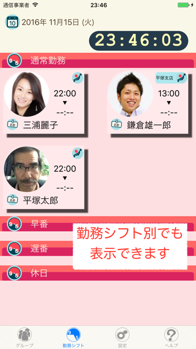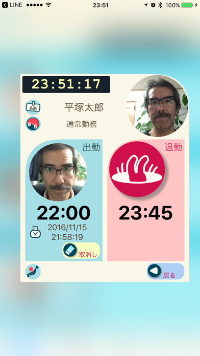 本アプリは出欠表示板とタイムカードを合わせて管理できるアプリです。 ・出欠表示板:本日の従業員の出勤・退勤状況を一覧画面に当日の顔写真入りで表示します。 ・データはクラウドで管理しているため、別の場所で別の端末からリアルタイムで確認することが可能です。 (複数店舗間で出勤状況の相互確認もできます) ・一覧画面は”グループごと”と”勤務シフトごと”を選んで表示できます。 ・タイムカード:出勤(業務開始)時刻と退勤(業務終了)時刻の登録は、名前を押すと表示される登録画面で 「出勤」または「退勤」ボタンを押すだけです。 ・「出勤」「退勤」ボタンを押すときに写真撮影し一覧画面に表示しますので、本人が押したことを確認できます。 ・出退勤の時刻は登録済みの勤務シフトのタイムテーブルに従い15分単位で自動調整 ・小規模事務所、店舗等の労務管理に! ・ユーザ登録して使い勝手を確認下さい。 *登録したデータの管理・修正は管理者様用アプリ”OnWork Manager -勤怠管理マネージャー(シフト計画から集計まで)-”をご利用下さい。 https://itunes.apple.com/us/app/onwork-manager-taimukadowomatomete/id1061846480?l=ja&ls=1&mt=8 *本アプリはiPhone アプリ”OnWork ーあなたのスマホがタイムカードにー"(無料)の姉妹製品です、 併用することでとさらに便利になります。 ・併用すると出張などの出先での打刻も可能です。 ・各従業員が自分の勤務状況一覧を確認することができます。 https://itunes.apple.com/WebObjects/MZStore.woa/wa/viewSoftware?id=1061846480&mt=8