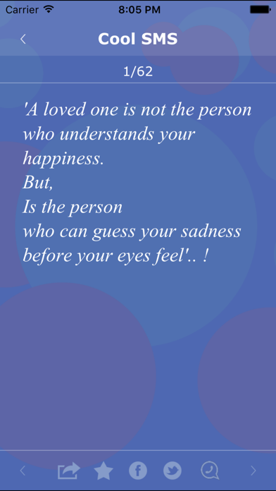 75000+ collection of latest text messages, forwards, quotes & top jokes SMS Collection is the largest SMS app for SMS users. It comes with wide range of SMS We provide thousands of SMS messages, Jokes, Shayaries. User Interface is very simple & elegant. Some Features of the application : * Junction of all categories (Friendship SMS, Love SMS, Birthday SMS etc.) * Share messages on social media * Best user friendly UI * Single click share