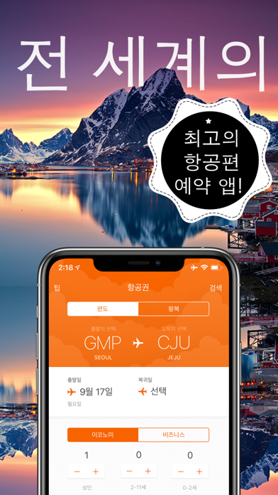 저렴한 항공권을 예약하는 비법은 무엇일까요? 저렴한 항공권을 예약하는 진짜 비밀은 지리적 위치에 따른 가격 책정에 있습니다. 지금 다운로드하여 자세히 알아보세요. 전 세계 777개의 항공사에서 저희에게 땡처리 항공권을 보내줍니다. 멋진 디자인의 앱에서 이전보다 빨리 저렴한 항공권을 찾고, 비교하고 예약하세요. 최고의 항공편 검색 및 예약 앱을 지금 다운로드하세요! シ 최저가, 신속, 최고 바쁜 중에 저렴한 항공권을 찾아야 하나요? 빠르고 사용이 쉬운 앱으로 돈과 시간을 절약하세요. 어디서든 전 세계 777개의 항공사를 검색하고 비교하여 가장 좋은 항공편을 최저가에 구하세요. シ 최고의 항공편 검색 및 예약 앱 저희는 최고의 항공편 비교 앱으로 수많은 상을 받았으며 CNN, New York Times, Mashable, TIME, Daily Telegraph로부터 추천을 받았습니다. 탭 한 번으로 가장 저렴하거나 빠르거나 좋은 항공권을 볼 수 있습니다. 선택하기만 하시면 세계를 여행할 준비 완료! シ 수수료 없음 저희는 주요 항공사, 100개의 여행 사이트 및 저가 항공사를 검색하고 가장 좋은 항공권을 찾아 항공권을 판매하는 업체로 무료로 안내해드립니다. 무료입니다! 저희는 독립 개발자이며 모든 여행자에게 가격 투명성을 약속드립니다. シ 100% 안전한 예약 シ 저렴한 항공권 예약 앱 중 1위인 이유가 여기 있습니다. – 장치에서 바로 예약할 수 있습니다. – 디자인이 멋지고 사용하기 쉽습니다. 항공편 검색은 까다롭거나 따분할 필요가 없습니다. – 예약할 준비가 아직 안 되셨나요? 검색결과를 저장해두거나 이메일 또는 문자로 전송하세요. – 가장 저렴한 여행 날짜와 공항을 찾으세요! – 경유지, 출발 또는 도착 시간, 항공사, 공항, 항공권 유형, 여행 사이트로 항공권을 빠르고 쉽게 정렬하세요. – 가격 계산기는 달력의 여러 날짜에 평균 요금을 표시하여 예산에 맞는 적합한 항공권을 찾는 데 도움을 줍니다. 저희는 열심히 일하는 로봇 덕분에 최고의 항공권을 찾을 수 있습니다. 수상 경력 – 저희 앱은 CNN, New York Times, Mashable, TIME, Daily Telegraph의 추천을 받았습니다. 최고의 항공권 검색 및 예약 앱을 지금 다운로드하세요! 이 앱은 빠르고 사용이 쉽고 무료입니다.