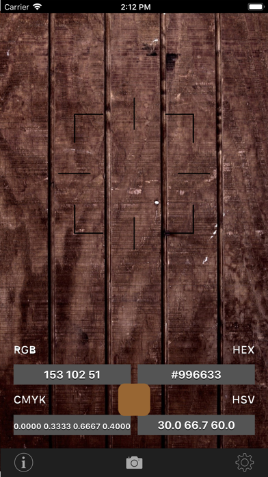 A simple tool for getting color from camera and vice versa. Features: Read color from camera. Color putout from RGB, CMYK, HEX for web and HSB. Tap to copy color code to clipboard. Quick note: RGB color space. The RGB color model is an additive color model in which red, green, and blue light are added together in various ways to reproduce a broad array of colors. CMYK color space. The CMYK color model (process color, four color) is a subtractive color model, used in color printing, and is also used to describe the printing process itself. CMYK refers to the four inks used in some color printing: cyan, magenta, yellow and key (black). HEX color space. A hex triplet is a six-digit, three-byte hexadecimal number used in HTML, CSS, SVG, and other computing applications to represent colors. The bytes represent the red, green and blue components of the color. One byte represents a number in the range 00 to FF (in hexadecimal notation), or 0 to 255 in decimal notation. HSB color space. The HSB (Hue, Saturation, Brightness) color model defines a color space in terms of three constituent components: Hue : the color type (such as red, blue, or yellow). *This is a universal app that work for both iPhone and iPad. Thanks for your support and do visit nitrio.com for more apps for your iOS devices.