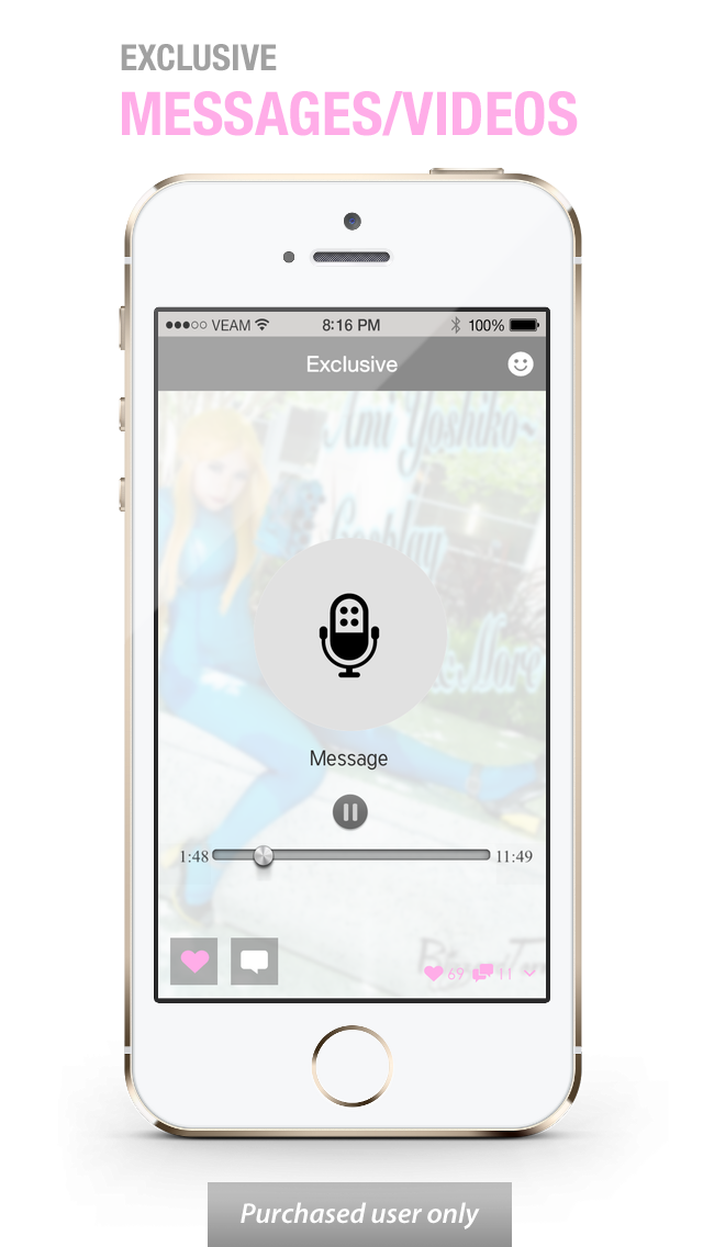 Hi everyone, I am Ami Yoshiko and I am a cosplayer, YouTuber, model and actress! I am very active as a cosplayer and YouTuber and with this app you get quicker, more convenient access to my cosplay progress, newest videos and the next events I'll be appearing at as well as ask me direct questions and get to know me with lots of other cool features! I hope you all enjoy this app and please leave suggestions on cosplays, videos and what you want to see from me next! Plus, only in the app will you be able to unlock Exclusive videos and even personal messages from me! With our subscribers exclusive service! What's in the App; YouTube Videos - All my old and new videos! With easy access! Community Forum Be part of Ami Yoshiko's community. The app includes a FREE fun and interactive forum. Share your photos, get motivated, ask questions and interact with Ami and other members just like you. - Join in on the fun and upload your own pictures and follow fellow members including Ami Yoshiko - The Instagram like feature in the forum allows you to post pictures along with your posts. - Topics include: Hot Topics, Meet & Greet and others Exclusive Area: Exclusive video/voice messages - Each month Ami Yoshiko will post an exclusive video or voice messages and you will have access to private tips that she only shares with her private members Privacy policy and terms of use; http://veam.co/top/guideline