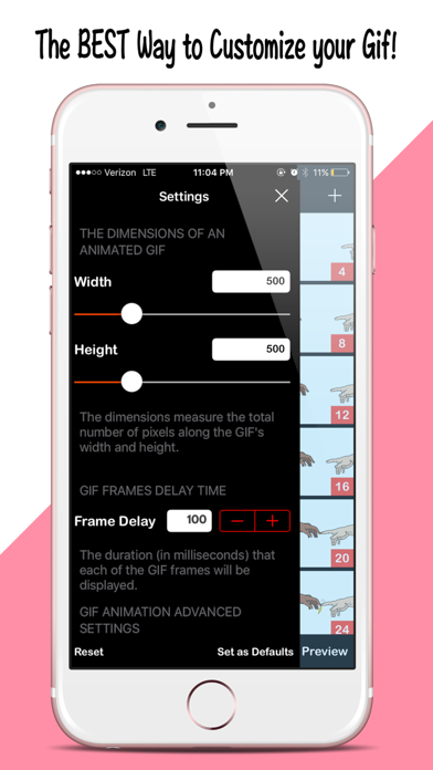 This is the best GIF app you've ever seen! The ULTIMATE GIF experience; create, personalize, and share gifs with everyone. You are now a GIF author, content-creator. CREATE ANIMATIONS, MEMES, GIPHY, PROMOTIONAL GRAPHICS, ARTWORK, & MORE! Remember to also download Flyerly.com - Create & Share flyers on the go. Features: - convert photo or video to gif - preview any gif on your camera roll - share gifs to your social media with just a click - save gifs to your device or send to a friend - customize gifs with over 10 different settings (dimensions, frame delay, loop count, aspect fit/fill, etc.) - rearrange gif frames by clicking and dragging - landscape and portrait mode - and MORE! Start GIFing! Convert images and videos into gifs, then customize them to your perfect settings. Preview already made gifs from your camera roll or create custom gifs on-the-go. Share to social media or simply save to your own device. With GIFing, your animations are LIMITLESS! As you may already know, it sucks that gifs saved on your device appear as a normal picture-- GIFing allows you to see which gifs are on your phone, preview them, and CUSTOMIZE them. We are done with the desktop to phone shifting-- have all your gifs and gif tools in one place! Live EDITOR lets you be in control! Edit your own gifs; drag and drop the frames in the order you want. No more dealing with unorganized uploads. Customization is key! With over 10 different settings, GIFing allows you to make the masterpiece you've been visioning. Change the SIZE of your animation, the frame DELAY, loop count, aspect fit/fill, preserve transparency, CROPPING, and more. All this GIFing power right at your finger tips. SHARE to your favorite SOCIAL networks! Easily press on the share button and send to friends, save the gif to your device and upload to social media, iMessage, email, and more. For All iPhones and iPads Follow us on Twitter @BestGifMaker or Facebook "GIFing - Ultimate Gif Maker & Viewer" Art credit to http://www.GreenMtnLabs.com - another GML creation.