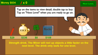 Happy Gold Miner is an amazing gold miner adventure game from META Studio. Tapping the screen to collect gold and activating dynamite to destroy if you collect stone, skulls, bones, animals. It helps you save time to complete the quests. A poor old man lived alone in a forest. Day by day, he went fishing, collected fruits and vegetables in the forest to eat and drank water in the streams to survive. One day, a rumor was said that there were a lot of underground golds in the forest where he lived. He made a decision to start his adventure to collect them. Help this old man in this difficult adventure and overcome all challenges to get high scores in game. FEATURES: - An addictive gameplay on iOS - Lots of difficult levels and unique items - Nice graphics and simple UI - Lots of achievements - Collect gold when you’re in offline - Share your achievement via Facebook, Instagram, Viber, Skype, etc. - Save your score and specific playing time. - Language support: English - Free download with no In-App Purchases Become the greatest gold miner in Happy Gold Miner game.