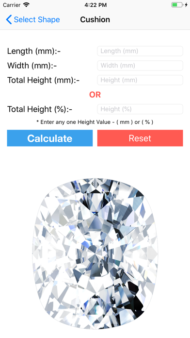 Diamond Weight Calculator and Smart Recut Estimator For Polished and Certified Diamonds. Basic calculator for All Fancy Shapes detailed below and Round Cut to calculate approx weight of diamond by entering average Diameter (mm) and Total Height in "mm" or "Percentage (%)". Use the diamond weight calculator to provide Diamonds with information about the carat weight of your diamond. Whether you are a Wholesaler or a Jeweler or a Manufacturers or anything in between, this app will calculate the size and recut your diamonds. Your diamonds calculator that goes with you every where. With Diam Calc App you can calculate the weight of stone based on diameter and total depth easy with your finger touch. Diam Calc is the best selling App in the Pocket PC World since its first release and in future will bringing the amazing tools for "Recut your Diamonds" on your iPhone. * Note :- Fancy Shape Calc may not work properly on iPhone 5S. PRO Features:- * Approximately calculate weight of Round, Pear, Heart, Marquise, Oval, Cushion, Trilliant, Radiant, Princess, Emerald and Asscher Cut Diamonds * Ads Removed Completely * Get All New Features of App in Future Free * New Shapes and Ratio wise calculations coming in future versions If you have any problem or require anything in next update, feel free to contact us via email on [email protected] Thanks for using Diam Calc! Like us on Facebook @ThePerfectCreativeStudio to stay updated.