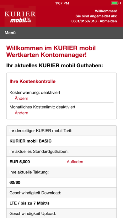 Mit der kostenlosen KURIER mobil App haben Sie jederzeit mobilen und einfachen Zugriff auf Ihre Freieinheiten, Kosten und Rechnungen. Mit der Familienfunktion können Sie außerdem mehrere SIM Karten in einer App verwalten. Auch die wichtigsten Einstellungen Ihrer SIM-Karte können Sie bequem selbst vornehmen. - Anzeige der aktuellen Kosten und Freieinheiten - Anzeige der letzten Rechnungen - Tarif wechseln - Zusatzoptionen bestellen - Einfache Rufnummernmitnahme - Sprachmailbox verwalten - Roamingeinstellungen verwalten - Mehrwertdienstsperre - Rufumleitung verwalten