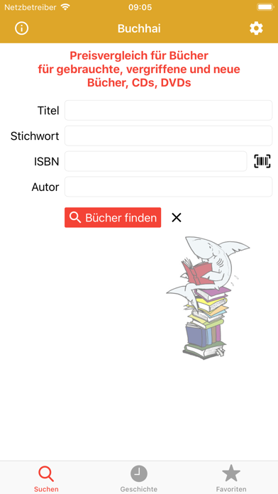 Buchhai ist eine Metasuchmaschine - vornehmlich für antiquarische und gebrauchte Bücher - aber auch für Musik, Spiele, Filme, Schallplatten und vieles weitere mehr. Buchhai durchsucht die wichtigsten deutschsprachigen Portale für antiquarische Bücher: Buchfreund, Achtung-Bücher, eBay, Booklooker, Bücher.de, Thalia.de, Weltbild.de, Abebooks und ZVAB. Buchhai enthält sogenannte Affiliate-Links zu den verschiedenen Marktplätzen. Bei einem Kauf der Produkte über diese Links erhält Buchhai.de eine kleine Provision. Sie haben Wünsche und Anregungen für unsere App? Schreiben Sie uns einfach eine E-Mail: [email protected] Nutzungsbedingnugen: https://www.whsoft.de/nutzungsbedingungen.html