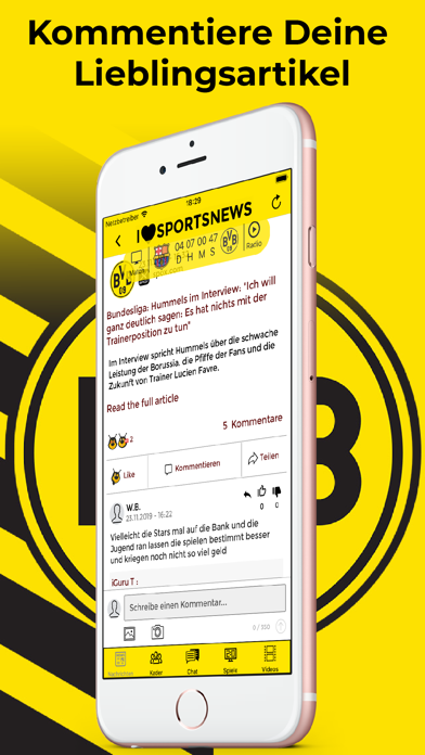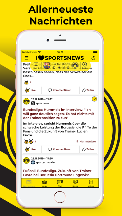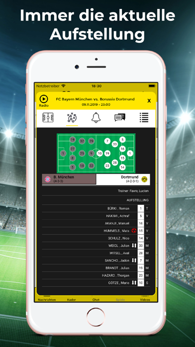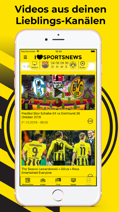 Du bist Fan des Borussia Dortmund und willst stets über die neuesten Nachrichten über und von den Spielern informiert sein? Du willst wissen, welcher Borussia Dortmund Spieler verletzt, erkältet oder gesperrt ist? Dich interessieren die neuesten Transfergerüchte? Du wolltest schon immer gleichzeitig ALLE Twitter Nachrichten Deiner Stars empfangen? Es gab jedoch bislang keine App, die Deinen Informationsdurst zum Borussia Dortmund stillen konnte!!? Mit der Sports News - Borussia Dortmund Edition hast Du jederzeit und überall Zugriff auf all diese Informationen zu Deinem Borussia Dortmund! Wir haben die neuesten Nachrichten von lokalen, regionalen, überregionalen, nationalen und internationalen Nachrichtenquellen. Wir haben die Twitter Feeds Deiner Stars eingebunden. Wir geben Dir Zugriff auf die neuesten Statistiken der Spieler und auf die Videos Deines Borussia Dortmund! Neben den schnellsten, genauesten und zuverlässigsten Sportnachrichten und Ergebnissen des BVB, bieten nur wir dir die Möglichkeit den Spielen hautnah und ohne Zeitverzug zu folgen. Unsere LIVE-Match-App ist die innovativste und hochwertigste 2nd Screen App, die du im AppStore finden kannst. Somit kannst du neben den aktuellen Ergebnissen und Statistiken auch die aktuellen Ballbewegungen des Borussia Dortmund überall und vollkommen mobil mitverfolgen. Näher dran am Spiel kannst und wirst du nur noch im Stadion sein! Hauptfunktionen: - Neuste Nachrichten und Gerüchte zum Borussia Dortmund und all seinen Spielern - Twitter Feeds des Vereins und aller Spieler - Alle Informationen und Statistiken zum Kader des Borussia Dortmund - Schnellster und zuverlässigster Ergebnisdienst aller Spiele des Borussia Dortmund - LIVE-Match-App für alle Spiele des Borussia Dortmund (inkl. der Freundschaftsspiele), die es dir erlaubt dem Spielgeschehen LIVE, übersichtlich und ohne Zeitverzug zu folgen - LIVE-Statistiken für alle Spiele - Umfassende Statistiken – inklusive Torschützen, Karten, Auswechslungen, Ballbesitzt und diversen weiteren Statistiken - Nutzerfreundliches Interface mit einer effizienten, mühelosen und blitzschnellen Navigation