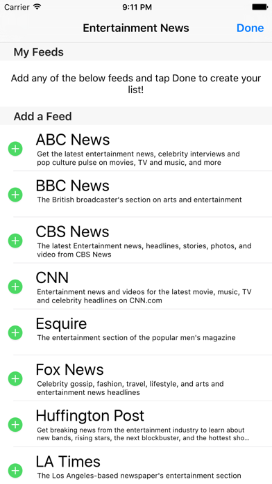 Interested in movies, TV, music, theater, celebs, or the arts? Download this completely free app now to get access to the latest content from Billboard, E! Online, The A.V. Club, Time, Esquire, CNN, Entertainment Tonight, Vulture, and more! Whether you’re looking for news, reviews, interviews, recommendations, or gossip, you'll find what you’re looking for right here! Install this app now to get started! If you have comments or suggestions for new feeds please email [email protected]!
