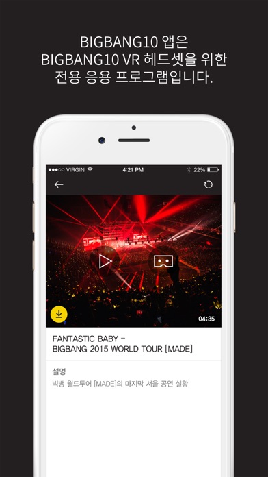 당신은 BIGBANG10-VR headset type 상. 그것을 클릭하고 응용 프로그램 사용을 시작하십시오.