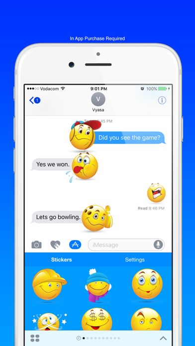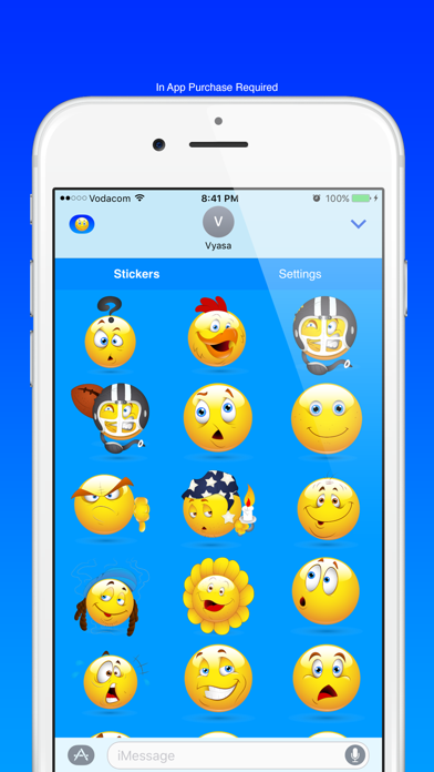 놀라운 귀여운 이모티콘을 사용 하 여. 독특한 스티커 중에서 선택할 수 있습니다. 이모티콘을 메시지 풍선이나 사진에 쉽게 붙여 넣을 수 있습니다. 처음 3 개의 스티커는 무료이며, 나머지 스티커는 인앱 구매를 통해 구입해야합니다.