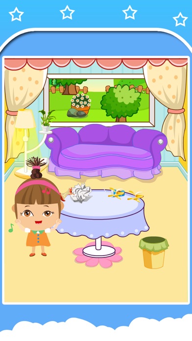 help Amy to clean her house and decorate it for the party Your job is to put each object in its proper place to make the house look perfectly. Good luck You can take some waste in the trash, place the decorations, place the clothes in the cupboard. If you love cleaning believe that you will enjoy with our game. Your Mom will be really proud of you!