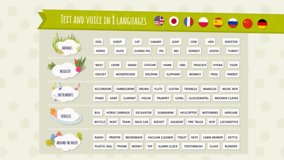 What sound does a guinea pig make? What animal makes a buzzing sound? Which vehicle hums like this? Domi Domi Listen and Guess is an educational app for kids 2-4 years old. Your child will learn to recognize animals and objects by the characteristic sound they make. Playing with lovable Domi Domi, children learn new words and start to associate pictures with their names and their sounds. With this app you child will: • sharpen their careful listening skills • develop interest in the sounds around them • learn sounds and new words • train ‘sight words’ reading • get prepared to learn another language Key features: • 2 types of play: ‘Listen’ and ‘Guess’ • 6 categories: Animals, Wildlife, Around the house, Vehicles, Instruments, Mixed • 8 fully voiced languages: English, German, Spanish, Chinese, Japanese, Russian, Polish, French • 16 high-quality natural sounds and pictures POPULAR FEATURE To assure your child’s comfort during play, you can disable the sounds your child is afraid of in ‘Comfort settings’. With the included advanced settings panel you can: • disable the sounds your child is afraid of in ‘Comfort settings’ • choose the language version of the names under the pictures • choose the language version of the voice-over Child friendly app: • no in-app purchases • no third-party advertising • no social media Domi Domi has been created by a group of educational game designers and developers, who are parents and experienced early years educators. The app was playtested by toddlers. -------------- Connect with us! Like us: facebook.com/DomiDomiApps Email us: [email protected]