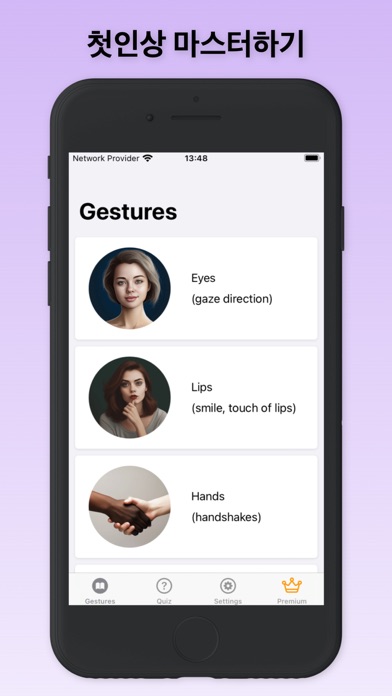 심리학, 몸짓 언어, 미세한 표정에 대한 궁극적인 가이드를 통해 숨겨진 진실을 발견하세요! 누군가의 미소가 진정으로 의미하는 바는 무엇인지, 또는 속임수의 미세한 신호를 어떻게 읽어야 하는지 궁금해 본 적이 있나요? 이 앱을 통해 심리학과 몸짓 언어의 매혹적인 세계에 깊이 빠져들어 사람들이 표현하지 않는 숨겨진 감정을 드러낼 수 있습니다. 주요 기능: - 몸짓 언어 해독: 사람의 진정한 감정을 드러내는 제스처, 자세, 미세한 움직임을 해석하는 방법을 배우세요. - 미세한 표정 마스터: 몇 초 안에 진정한 감정을 드러내는 순간적인 표정에 대한 통찰력을 얻으세요. - 심리적 통찰력: 인간 행동과 의사결정에 영향을 미치는 정신적 전략을 발견하세요. - 인터랙티브 퀴즈 및 연습: 재미있고 매력적인 도전으로 새로운 지식을 시험해 보세요. 심리학 전공 학생이든, 커뮤니케이션 전문가이든, 아니면 단순히 사람들을 더 잘 이해하고 싶어하는 사람이든, 이 앱은 필요한 모든 도구를 제공합니다. 사회적 상호작용을 개선하고, 거짓말을 감지하며, 사람들을 열린 책처럼 읽어보세요! 이 앱을 설치해야 하는 이유는 무엇인가요? - 즉시 적용 가능한 지식: 배운 팁과 기술을 실제 대화에서 즉시 적용할 수 있습니다. - 재미있고 매력적: 학습을 즐겁고 실용적으로 만드는 인터랙티브한 콘텐츠. - 모두를 위한: 사전 지식이 필요 없습니다. 초보자든 전문가든, 항상 귀하에게 유용한 것이 있습니다. 비언어적 커뮤니케이션의 힘을 열어보세요. 오늘 앱을 다운로드하고 줄 사이를 읽기 시작하세요!