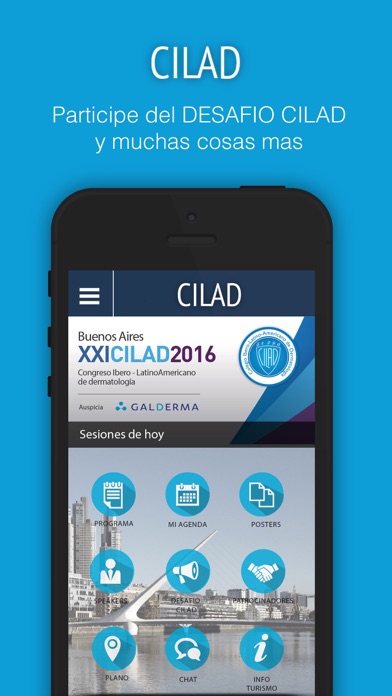 Con esta aplicación usted podrá votar en las charlas interactivas, participar del DESAFÍO CILAD, ver el programa científico, manejar su agenda, conocer a los conferencistas y más. Habrá un espacio del APP en el Salón San Telmo, donde podrá pedir información.