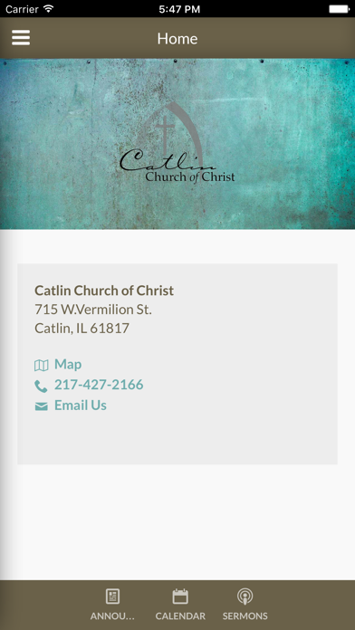 With the Catlin Church of Christ app, you will always be a tap away from our sermons, news, and more. You can watch or listen to our Sunday sermons and easily share links with your friends on Facebook or by email. - Listen and watch sermons - Stay up to date on events and activities - Find a place to Grow (learn more about Jesus) and Go (serve with others in our congregation) ...and much, much more! Catlin Church of Christ is a multigenerational community of individuals who love God and love people. It is our mission to develop devoted followers of Jesus Christ by growing and serving together. Join us as we change our community and the world in the name of Jesus Christ! We would love to get your feedback, email [email protected].