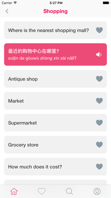 You are going to visit, live, study or work in China and you need to learn Chinese? Or simply you want to learn one more foreign language to communicate or to be able to study more about this interesting country? To satisfy higher and higher demand of people on learning Chinese, we have developed this application especially for you. COMPLETELY FREE: You can use Learn Chinese For Communication with full features without paying a single penny. THOUSANDS OF COMMUNICATING SENTENCES: There are over 2000 sentences divided into 24 categories relating to daily life, business, traveling, etc, we believe that Learn Chinese For Communication is going to be a wonderful friend on the way conquering this language. EXPLANATION, PINJIN TRANSLITERATION AND SAMPLE PRONUNCIATION AUDIO: This app helps you learn not only vocabulary but also pronunciation with text explanation, pinyin transliteration and Chinese voice pronunciation. You can learn by both word and sound without making any effort to look up or to practice with Chinese speakers like traditional methods. SIMPLE, MODERN AND PRETTY INTERFACE: We have tried our best to bring you an elaborately designed and eye-catching interface which help you have excited experience and feel more interested in learning process. SEARCHING AND BOOKMARK: We have also built Searching feature to help you find out the words or sentences you need in a simple and rapid way. In addition, Bookmark feature help you save your favourite sentences and bring them into a separated category which is easy for your review in future. SHARING AND FEEDBACK: You can share all of your favourite content to everyone by Sharing feature via Facebook, Twitter, Email, Google+,... We always desiderate to bring you our best value, therefore, please do not hesitate to give us you opinions, feedbacks, or requirements via in-app Feedback feature or directly in Ratings Reviews area. Thanks a lot! StayHungry Team.