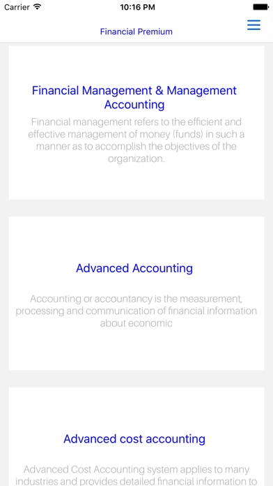 Management in businesses and organisations is the function that coordinates the efforts of people to accomplish goals and objectives using available resources efficiently and effectively. This application is suitable for undergraduate, graduate and postgraduate students. It is also recommended for BBA, MBA candidates, and to all Management professionals. This application is helpful to CIA, CPA, ACCA, IFRS, CMA , CISA, PMP & prince2 candidates. Also it's recommended to teachers, lecturers and researchers. The Master of Business Administration (MBA or M.B.A.) is a master's degree in business administration (management). The MBA degree originated in the United States in the late 19th century when the country industrialised and companies sought scientific approaches to management. The core courses in an MBA program cover various areas of business such as accounting, finance, marketing, human resources and operations in a manner most relevant to management analysis and strategy. Most programs also include elective courses. If you thinking about an MBA MBA Finance Premium (Management Accounting, Financial Management,Advanced Cost Accounting ,Advanced Accounting)subject (all Management Course Example MBA, MCA, B.TECH, PGDM, BBA, BCA, etc) this app is provide for educational and all professionals management tools, which is a key publication in a series of professional and educational reference, The app is provide the core concept of the strategy and strategic management knowledge base within the project management area, it is real use for Management, Business and Personal life, Subjects Included: 1:Management Accounting, 2:Financial Management, 3:Advanced Cost Accounting , 4:Advanced Accounting Learn while playing and play while learning with our MBA Finance Premium tools! Whether you want to further your career or simply gain a new skill, this tutorial will be useful for you.
